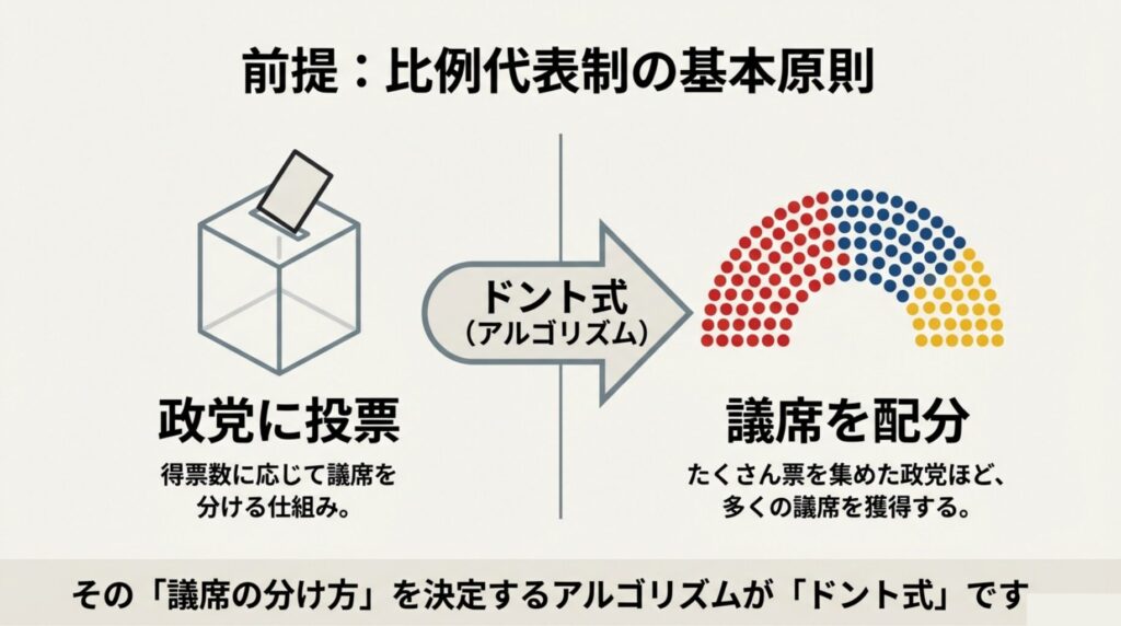 「比例代表はドント式で議席配分」